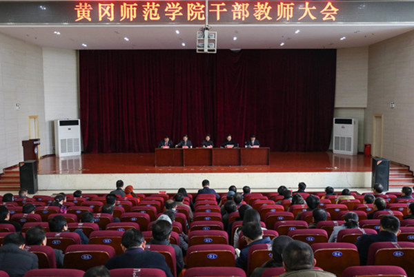 本网讯 12月12日上午,我校召开全校干部教师大会,宣布省委关于我校党委书记任命决定。湖北省委组织部副部长、省委非公有制经济组织和社会组织工作委员会书记蔚盛斌,省委第三巡视组副组长、省委组织部干部五处处长胡立强,市委常委、组织部部长赵斌,市委组织部副部长叶章夭及我校全体在家校领导出席会议。赵斌主持会议。