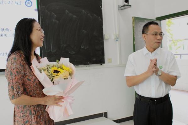 上午第一节课,陈向军来到博学楼的课堂,先后为外国语学院段萍副教授、化学化工学院徐兰英教授送上鲜花与祝福;漆昌柱到创新楼,深入课堂慰问文学院(苏东坡书院)方星移教授、机电与汽车工程学院陈小兰副教授。校领导与4位教师代表亲切交谈,详细了解他们的工作、学习、生活等情况,感谢他们为学校改革发展做出的不懈努力和突出贡献,勉励广大教师不忘立德树人初心,牢记为党育人、为国育才使命,发扬黄师精神,弘扬高尚师德,潜心教书育人,勇攀科研高峰,积极服务社会,真抓实干挑重担,攻坚克难启新程,在推动学校高质量发展中再建新功。